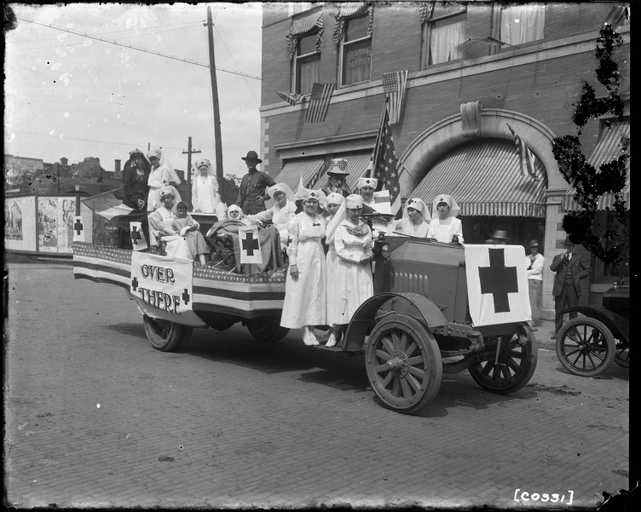 Algert Theodore Peterson, World War I era parade float by the Red Cross, circa 1917.