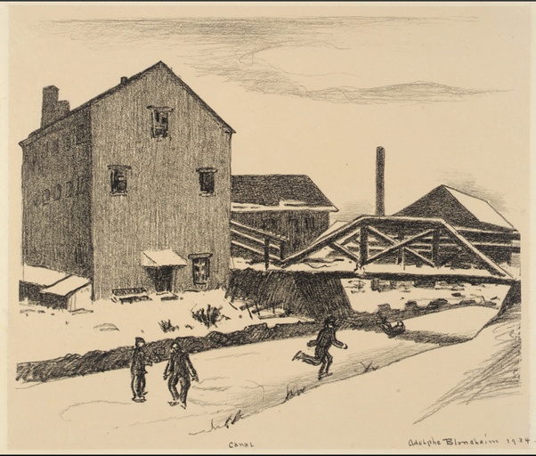 Adolphe Blondheim, born in 1888 in Baltimore, Maryland, was a student at the Maryland Institute of Fine Arts and later attended the Pennsylvania Academy of Fine Arts. In 1913, he married Rosa DeYoung, niece of writer Gertrude Stein. Blondheim served in the military as part of the Camouflage Corps, 24th Engineers, in 1918. From 1920 through 1930, Blondheim was an educator at the Kansas City Art Institute. He is known for his non-objective art style with oils and watercolors, and his semi-abstract style in his etchings and lithographs. He was a member of the Chicago Society of Etchers, the New Group and its offspring, the Independents.